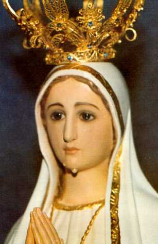 June 17, 2001 - On this feast of The Blessed Sacrament or Corpus Christi, during the rosary at Marie DeGrechie's house, again during the Salve Regina, flashed before my closed eyes the life-size, rugged outdoor cement statue of Our Lady dressed in a long green mantle, the same green as shown to me by St. Joseph in the sun, on January 21, 1989 (cf. Section VIII). Our Lady was wearing a massive golden crown which covered part of her forehead.