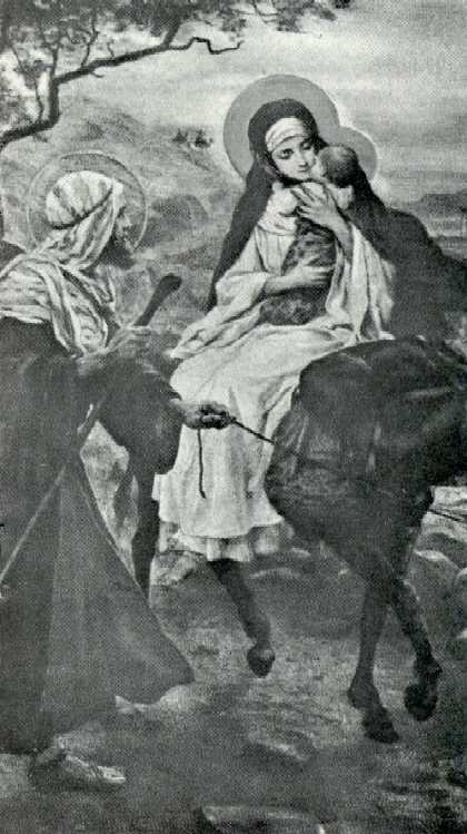 Consider the sharp sorrow which Mary felt when, St. Joseph being warned by an angel, she had to flee by night in order to preserve her beloved Child from the slaughter decreed by Herod. What anguish was hers, in leaving Judea, lest she should be overtaken by the soldiers of the cruel king! How great her privations in that long journey! What sufferings she bore in that land of exile, what sorrow amid that people given to idolatry! But consider how often thou hast renewed that bitter grief of Mary, when thy sins have caused her Son to flee from thy heart. Wherefore repent, and turn to her, humbly saying: Sweetest Mother,* once and once only Herod obliged thee to fly with thy Jesus,* to escape the slaughter which he had commanded;* but I, how often have I forced my Redeemer,* and thee with Him, to fly from my heart,* when I have admitted into it accursed sin,* hateful to thee and to my loving Lord.* With tears and contrition I humbly sue for pardon.* Mercy, dear Lady Mine, mercy!* and I promise thee that, for the future,* with the help of God,* I will ever maintain my Saviour and thee in complete possession of my soul.* Amen. |