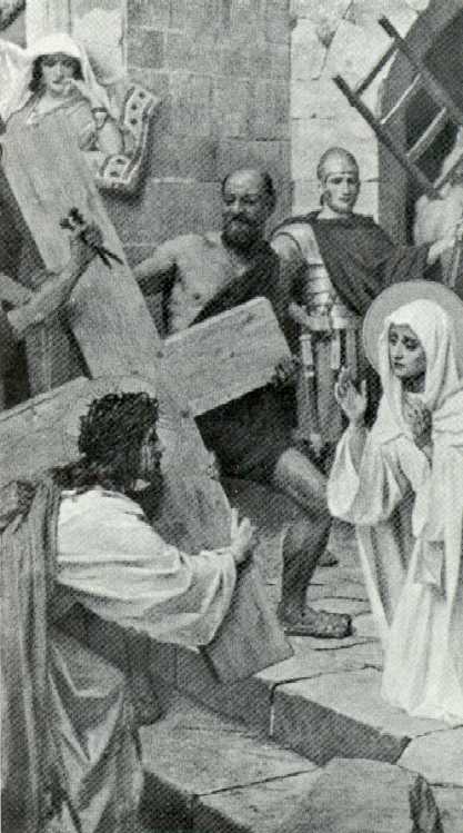 Come, O ye sinners, come and see if ye can endure so sad a sight. This Mother, so tender and loving, meets her beloved Son, meets Him amid an impious rabble, who drag Him to a cruel death, wounded, torn by stripes, crowned with thorns, streaming with blood, bearing His heavy cross. Consider, my soul, the grief of the blessed Virgin thus beholding her Son! Who would not weep at seeing this Mother's grief? But who has been the cause of such woe? It is I, who with my sins have so cruelly wounded the heart of my sorrowing Mother! And yet I am not moved; I am as a stone, when my heart should break because of my ingratitude. O Virgin most holy,* I crave pardon for the sorrows I have caused thee.* I know and confess that I deserve it not,* for it is I through whom thy Jesus was so treated;* yet do thou call to mind that thou art the Mother of mercy.* Show mercy, then, to me,* and I promise to be more faithful to my Redeemer in the time to come,* and thus to console thee for the many sorrows I have offered to thine afflicted heart.* Amen. |