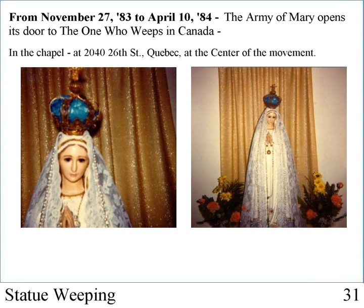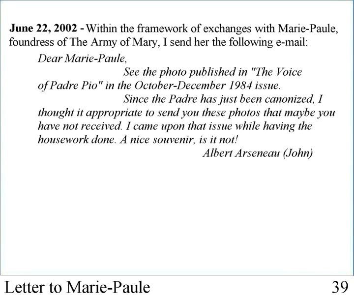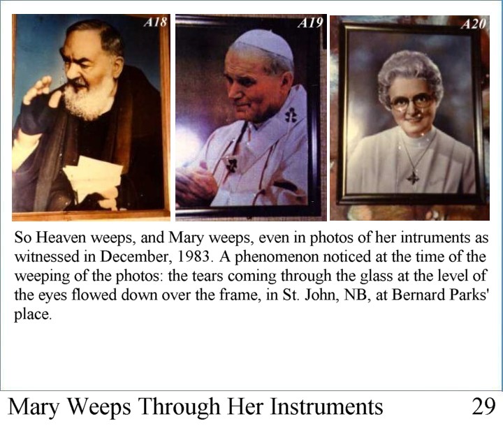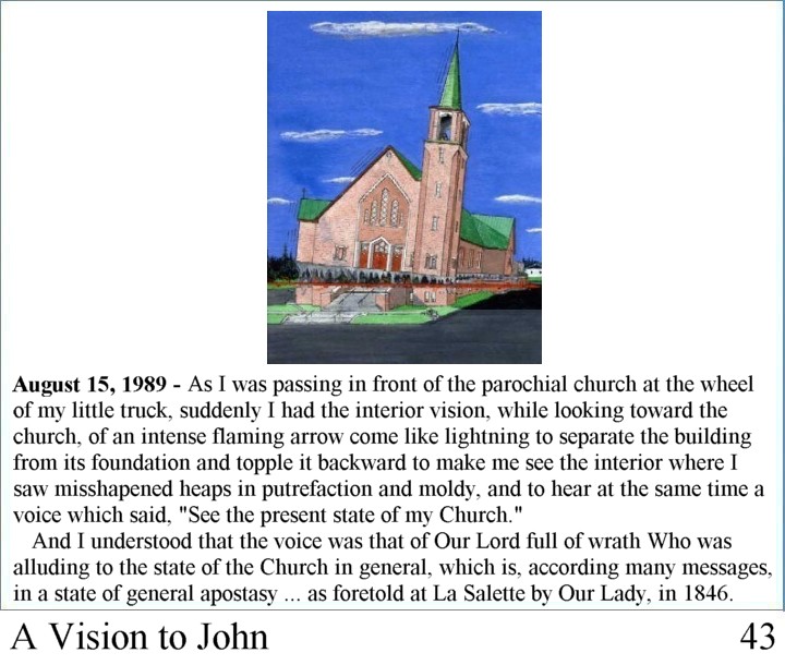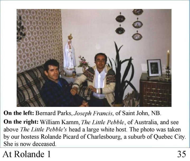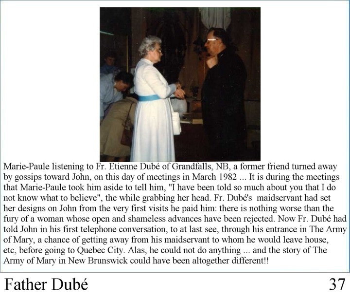 And although advised of this intervention by The Father, that collaborator still insisted to express his righteousness, even to the extent of saying he could not make a mistake as "he was a direct channel of wisdom" between The Father and John, guardian of Mary, and the instrument chosen for the establishment of The Asylum City and the Community of St. Joseph, called to work in unity with Marie-Paule, the servant of Our Lady of All Peoples, in Lac-Etchemin, QC.