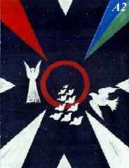 Jésus affirma dans un message: "Lorsque les armées rouges arriveront, elles ne franchiront, qu'au prix de leur vie, la couronne de feu que formeront les divers lieux de la terre où Ma Mère est apparue". (Les anges, nos puissants médiateurs, p. 39, Heinrich Kreuzer, Oeuvres Mariales, CH-4632, Suisse). À la droite du cercle rouge, d'où sortent des myriades d'anges, la présence du Saint Esprit sous forme de colombe (A2). Spectacle ineffable et émouvant en nos cieux dont n'en seront les témoins qu'un petit nombre!